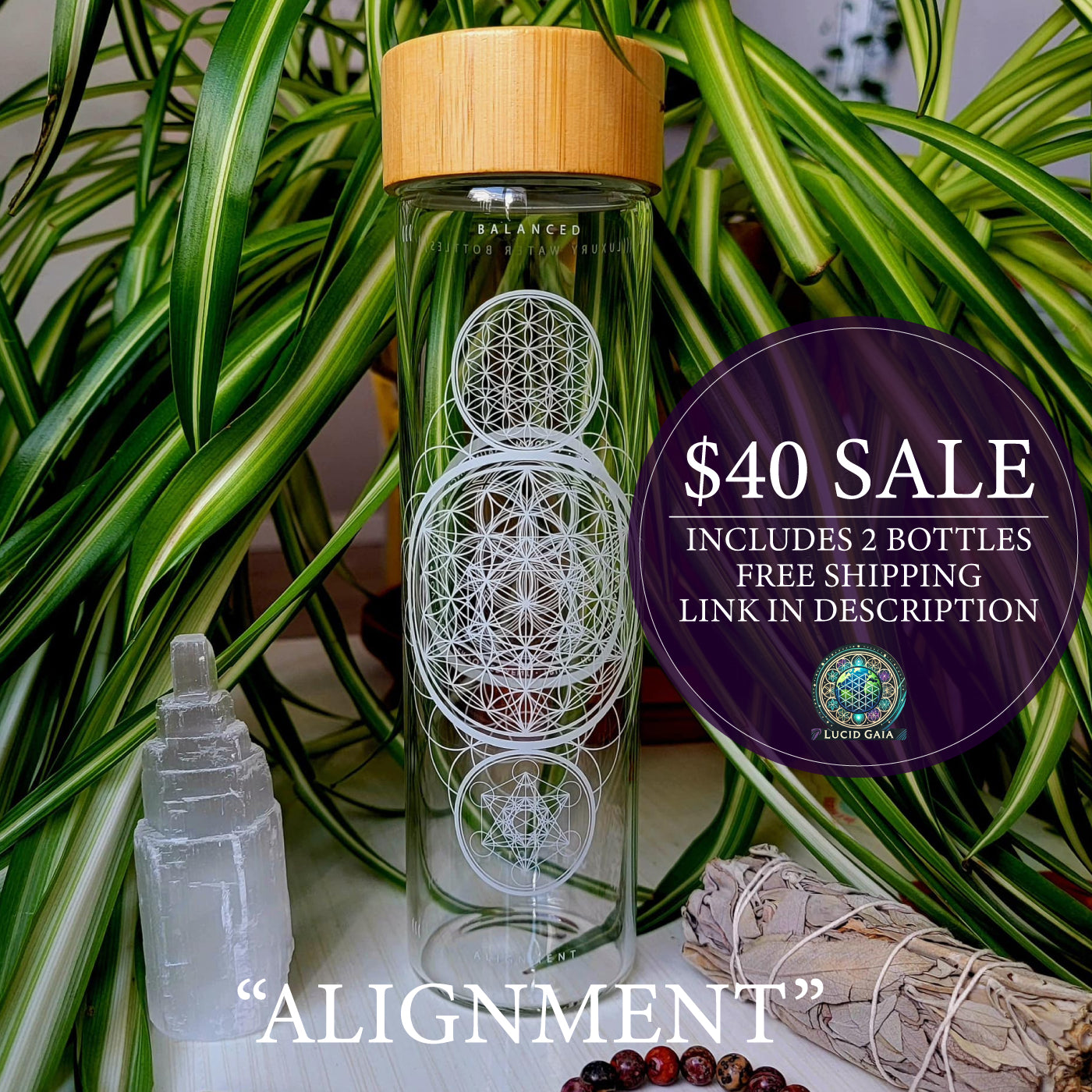 ALIGNMENT BOTTLE: The "Alignment" symbol is merging of the Yin and Yang, Flower of Life and Metatron's cube energies into one. The balance and combination of them all is the ultimate tool for manifestation.