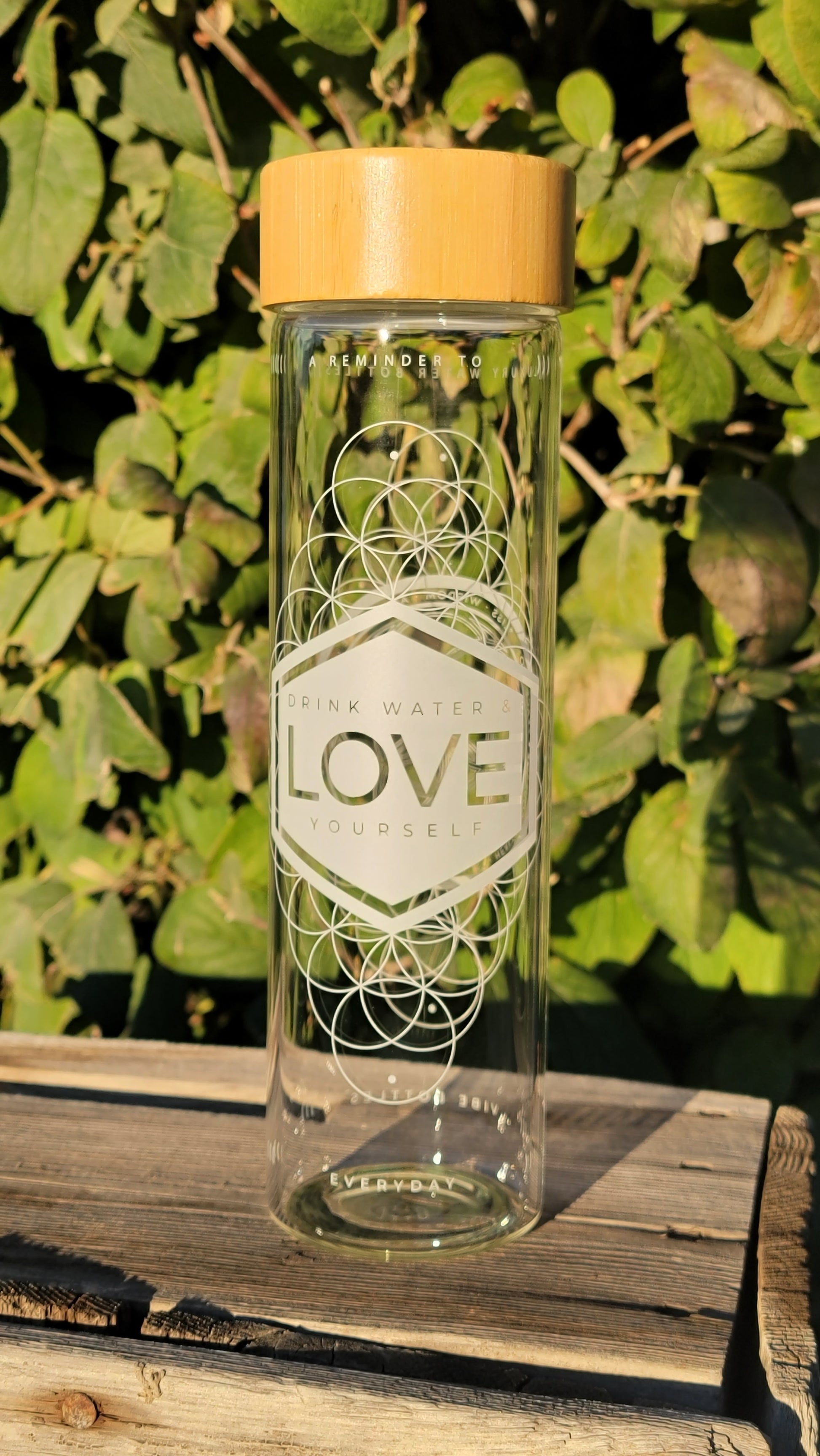 Inspired by Masaru Emoto’s research, each Vibe Bottle is designed with more than just aesthetics. Emoto discovered that positive messages can change the molecular structure of water, creating beautiful crystal formations when exposed to words like love and gratitude. When you drink from a bottle adorned with these words and sacred symbols, you’re surrounding yourself with positive energy, promoting wellness, calm, and clarity.